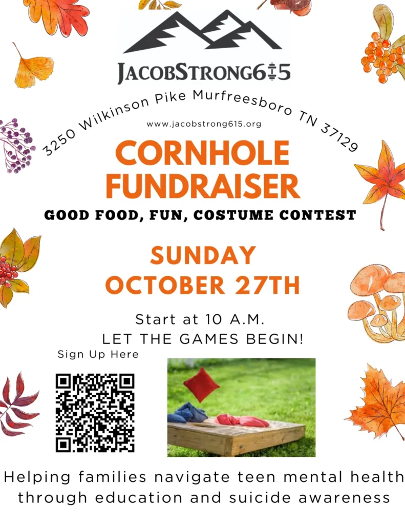 We are very excited to be putting on a cornhole fundraiser. There will be food, fun, and a costume contest! Please sign up using the QR code below and reach out if you are interested in any sponshorship opportunities.